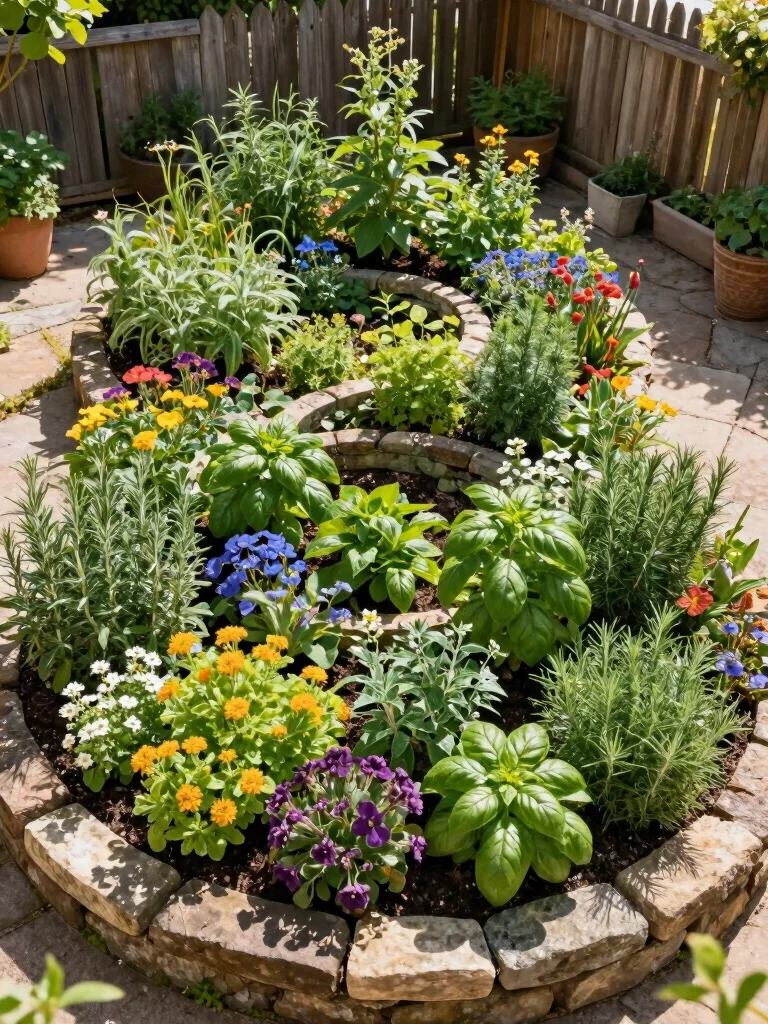 – Plant herbs interspersed with colorful flowers to create vibrant patches.