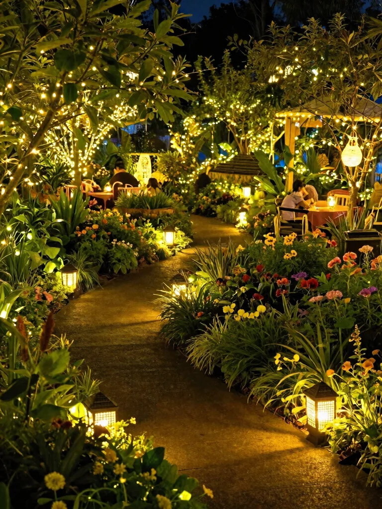 Enhance your garden’s charm by incorporating enchanting lighting to create a cozy atmosphere for evening enjoyment.