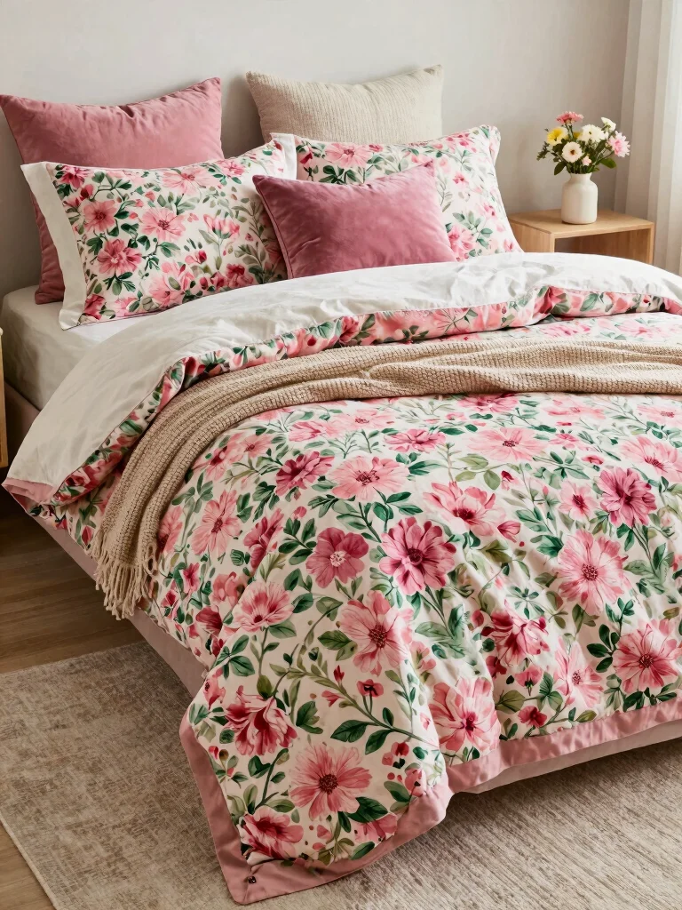 2. Floral Bedding and Textiles