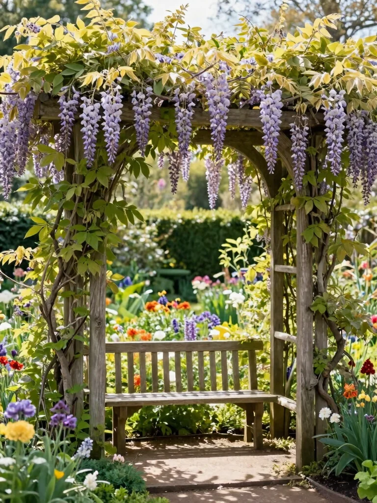 Do you want to create a stunning focal point in your garden? A charming garden arbor not only provides shade but also serves as an enchanting entryway. Adorn it with climbing vines or wisteria to add a romantic touch, creating a beautiful structure that enhances your outdoor space.