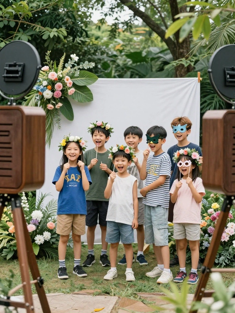 Capture the joyful moments of the day with a Nature-Themed Photo Booth! Create a backdrop using natural materials like leaves, flowers, and branches. Provide fun props such as flower crowns, insect masks, and garden tools to make it entertaining.
