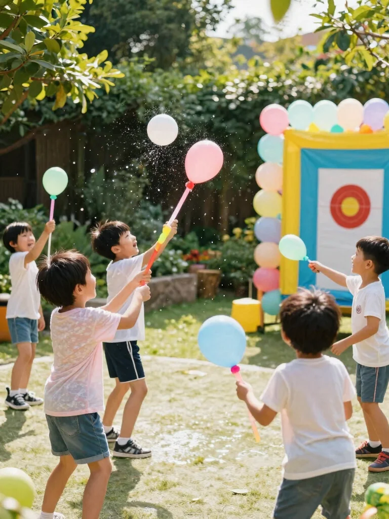 – Target Practice: Set up a target and let kids throw water balloons at it for points.