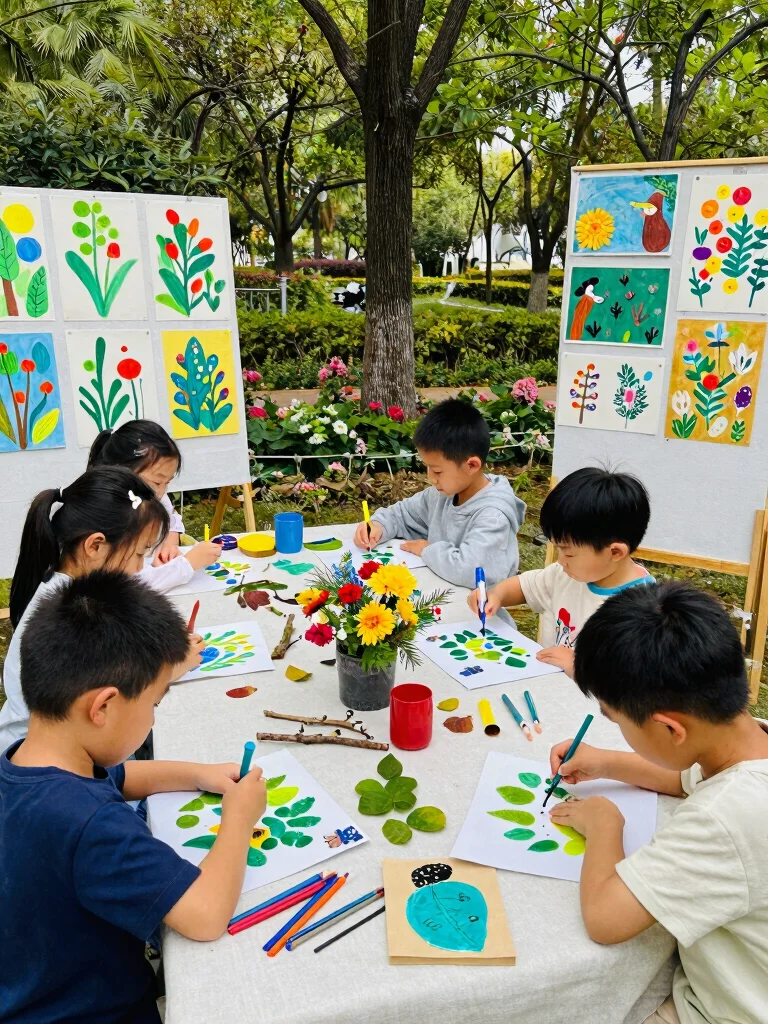 Set up a Nature Art Station for the budding artists among the kids! Provide natural materials like leaves, twigs, and flowers for them to create their unique masterpieces. Use recycled paper or canvas as a base, encouraging creativity while supporting eco-friendly practices.