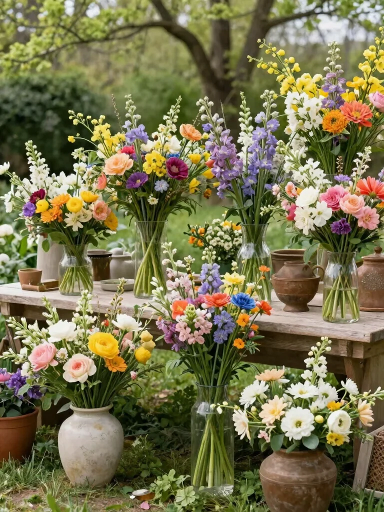 Consider how you wish to display your flowers. Do you prefer elegant bouquets for centerpieces or loose arrangements in mason jars? Tall vases can create height and sophistication, while small pots or window boxes add a quaint touch. Choose an arrangement style that complements the overall theme of your garden party.