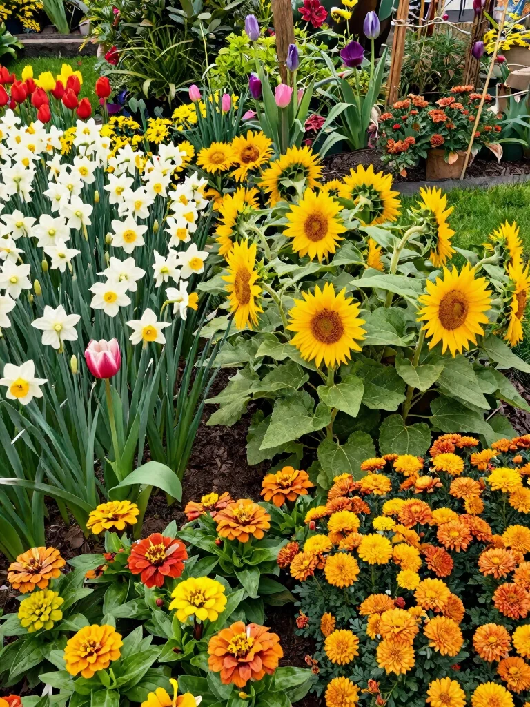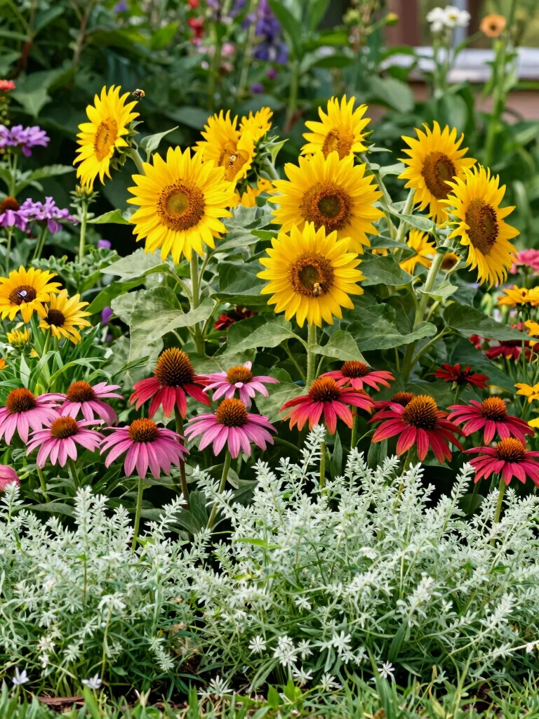 Create layers by varying plant heights and types for added depth. Position tall sunflowers or hollyhocks at the back, medium-height blooms like coneflowers in the middle, and delicate ground covers in the front for a staggered look. This approach ensures that your garden remains visually captivating throughout the seasons.