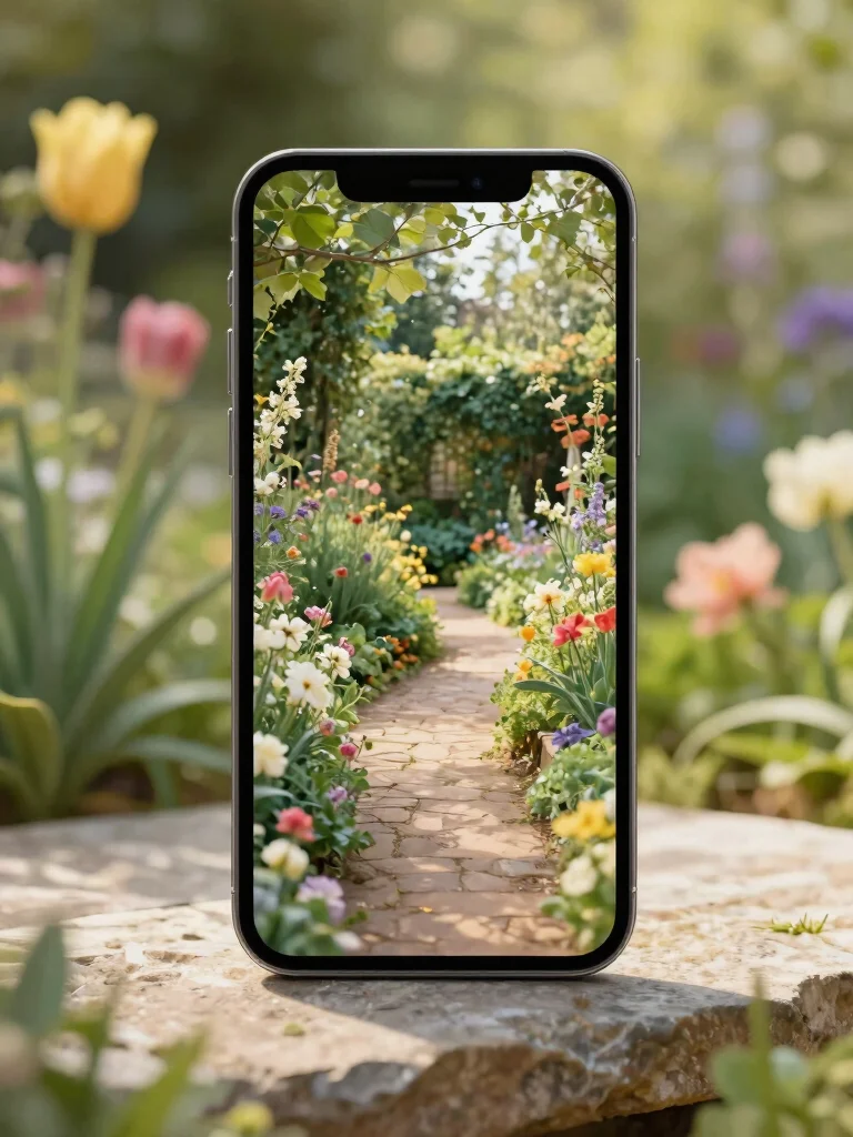 This stunning garden landscape transforms your phone into a peaceful retreat, inviting moments of serenity into your daily life.