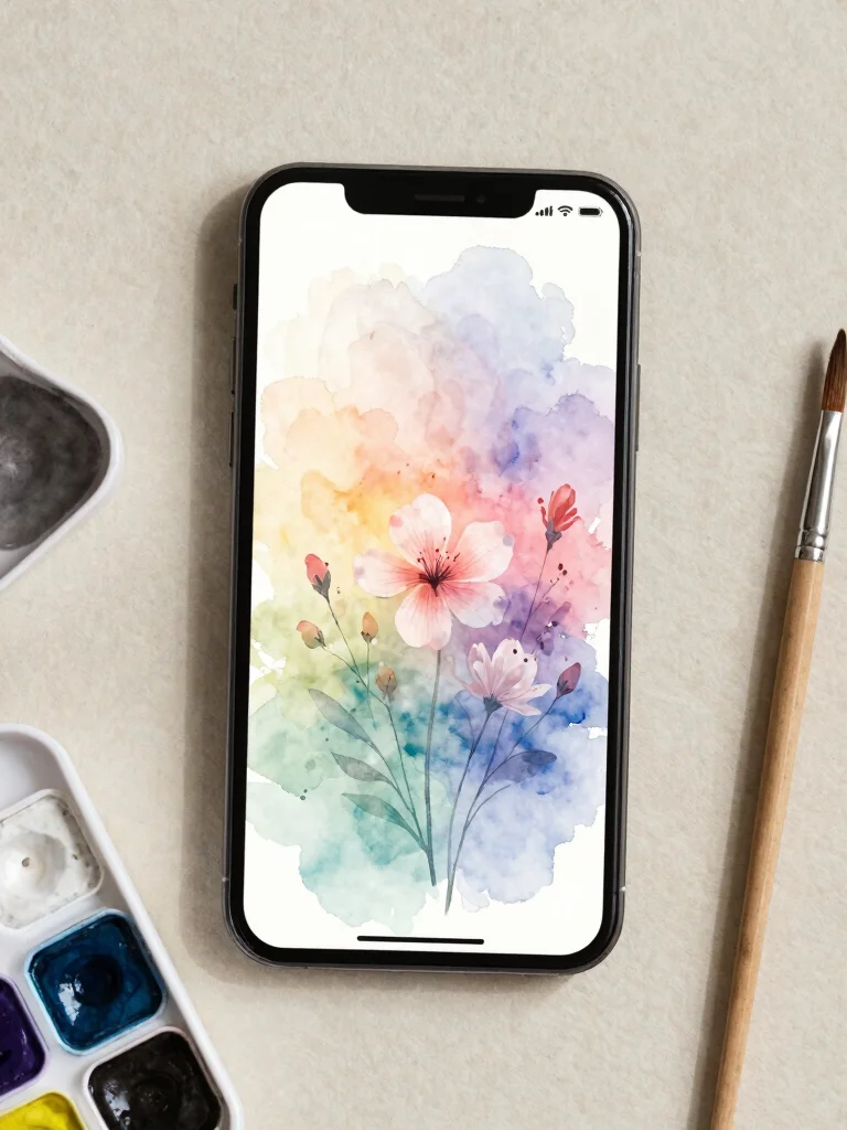To enhance your setup, use pastel app icons that coordinate beautifully with the watercolor theme. A simple, clear case will showcase the artwork while keeping the focus on the design. This wallpaper is perfect for anyone who loves art and wants to incorporate it into their everyday life.