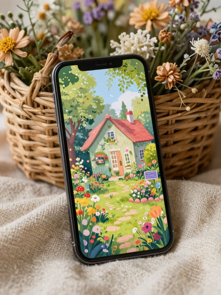 To enhance your experience, use cheerful, colored notifications that match the homey theme. Consider a case with a cottage or floral design to tie everything together beautifully. Using this wallpaper during the spring and summer adds a seasonal relevance that celebrates the beauty of nature.
