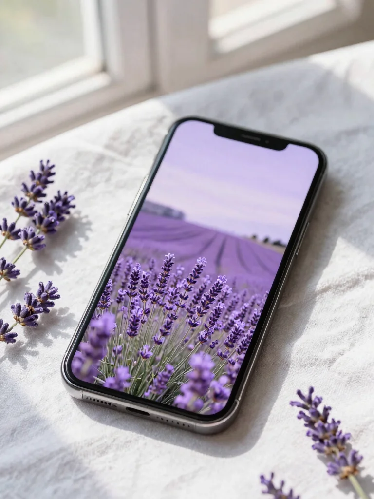 Ways to enhance your experience: – Pair with lavender-colored accessories for a cohesive look. – Use calming notifications to sustain a serene vibe. – Incorporate the wallpaper into a wellness app theme for added tranquility.