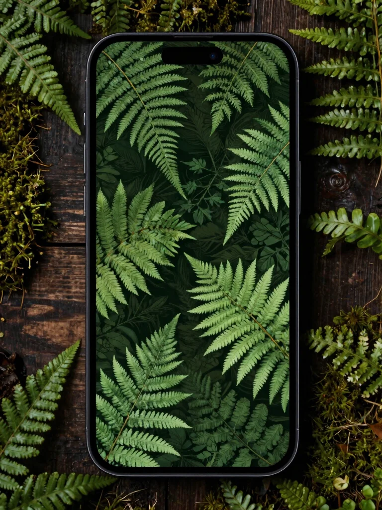To enhance this natural vibe, pair it with earthy colors in your phone case to create a cohesive aesthetic. Keep app icons simple and minimal to avoid overwhelming the serene look of the ferns. Using this wallpaper as a background for nature-themed reminders can inspire you every time you check your phone.
