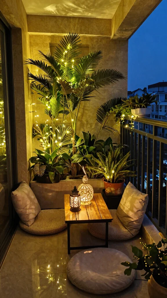 Adding fairy lights to your balcony garden can create a magical ambiance in the evenings. String lights softly draped around planters or along railings transform your space into a cozy retreat. Combine lights with decorative elements like lanterns or colorful cushions for a charming atmosphere.