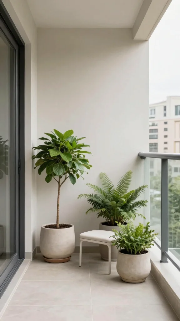 A minimalist balcony serves as a peaceful retreat amid the hustle and bustle of urban life!