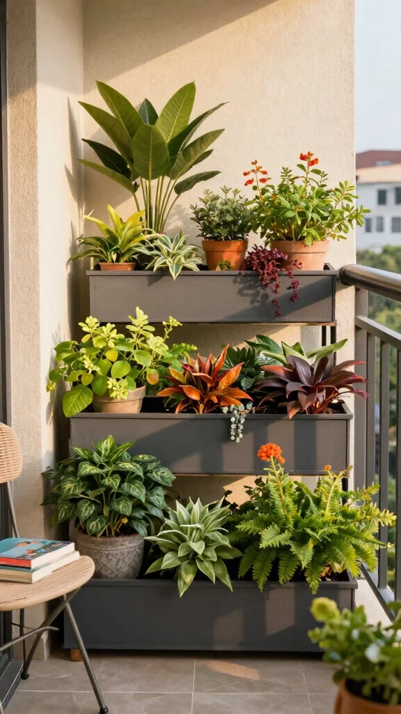 Multi-tiered planters are a great way to add height and variety to your balcony garden. They allow you to stack multiple levels, enabling a diverse range of plants to flourish in a compact area. This creates a stunning visual effect that will impress anyone who visits.
