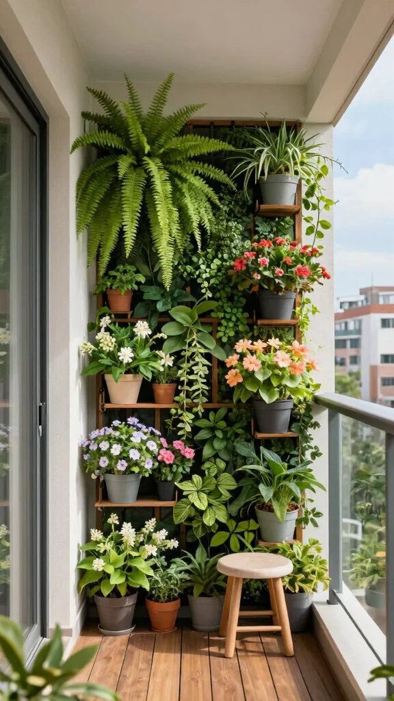 This vertical garden not only enhances your balcony’s appeal but also offers a serene escape right at home.