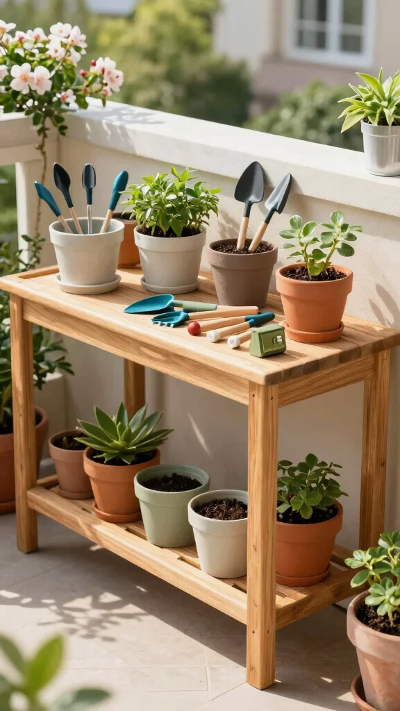 For gardening enthusiasts, a potting bench is a practical and stylish addition to your balcony. This workspace allows you to repot plants and organize your gardening tools effectively. Opt for a compact design that fits your space while providing ample surface area for your gardening tasks.