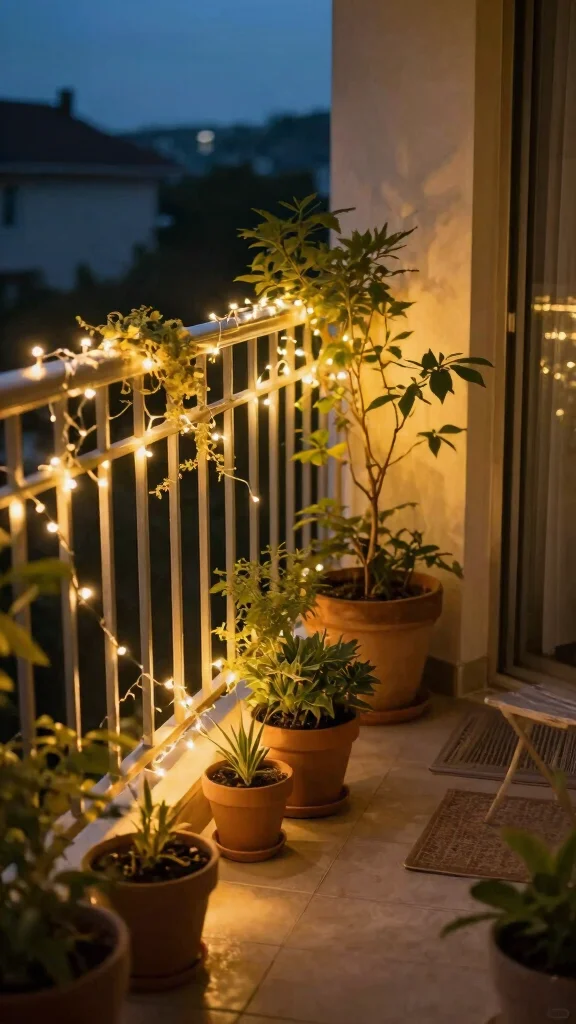Opt for solar-powered or battery-operated lights to avoid complicated wiring. Mixing warm white and colored lights can create a playful vibe that enhances the charm of your balcony.