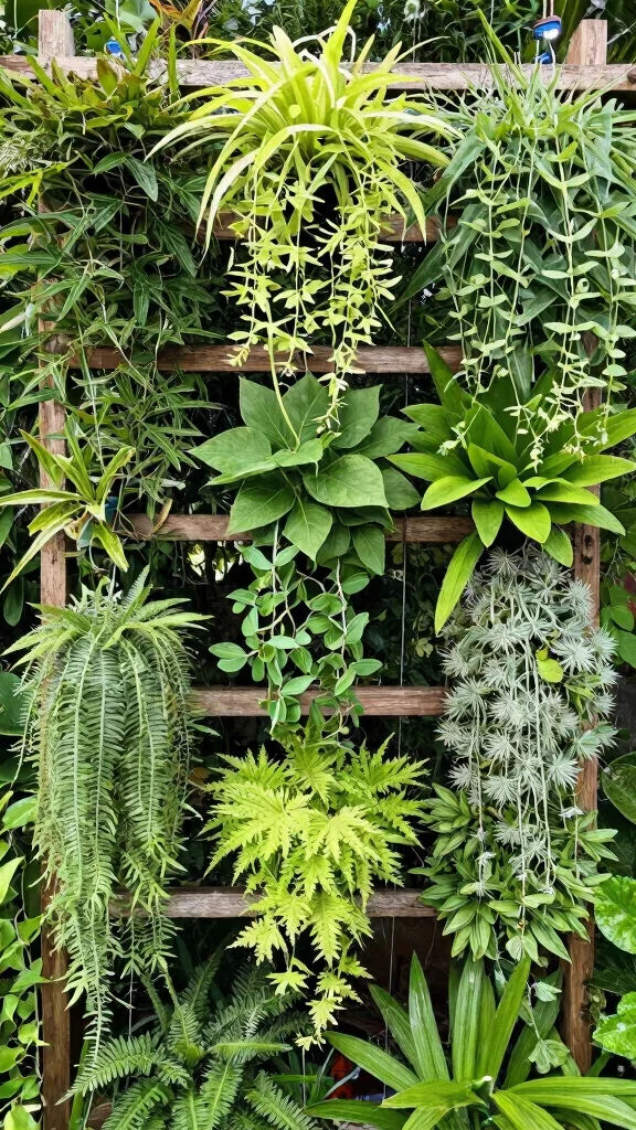 Use a sturdy structure to support your vertical garden arrangement. Incorporate a drip irrigation system for efficient watering and plant health. Choose a mix of plants to create layers and textures that pop.