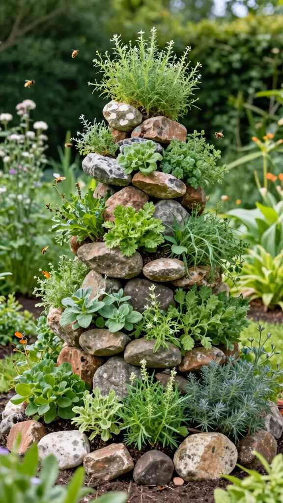 Build a spiral using stones or bricks to create a sturdy structure that looks great. Include an assortment of herbs that grow well in varying conditions, from sun-loving to shade-tolerant. Water from the top to let moisture trickle down through the spiral.