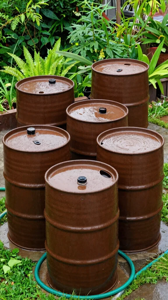 Using recycled water barrels for irrigation is a smart way to conserve water and support sustainable gardening practices. Collect rainwater and use it to nourish your plants, reducing reliance on municipal water sources. Imagine a garden flourishing with natural water.