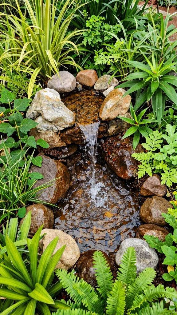 – Integrate plants around the feature for added charm.