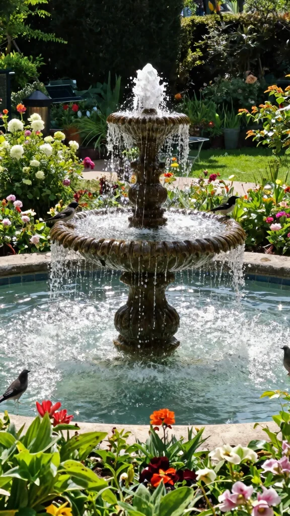 Choose a stylish fountain design that complements your garden’s aesthetic. Position it centrally to create a stunning focal point. Surround the fountain with plants to enhance its beauty and invite wildlife.