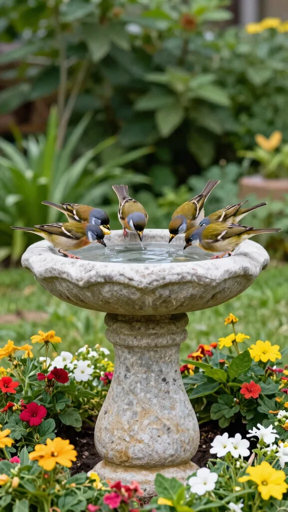 Choose natural stone or recycled materials for a durable and appealing design. Plant native flowers nearby to draw in more birds. Regularly clean the bird bath to ensure hygiene and attract a variety of visitors.