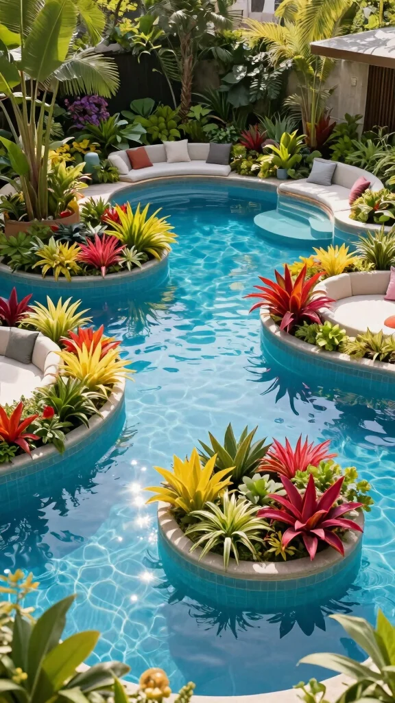 A floating garden pool creates a captivating blend of nature and relaxation.