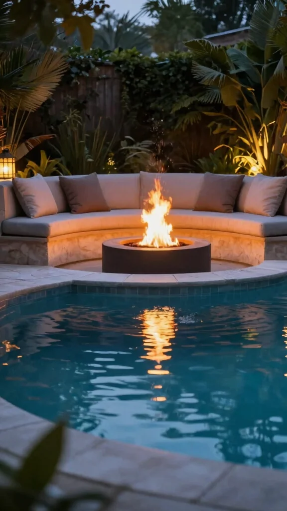 Select a suitable area for both features and build a small pond or pool to hold water. Install a fire pit or fireplace nearby, ensuring safety while adding seating for guests to enjoy both elements.