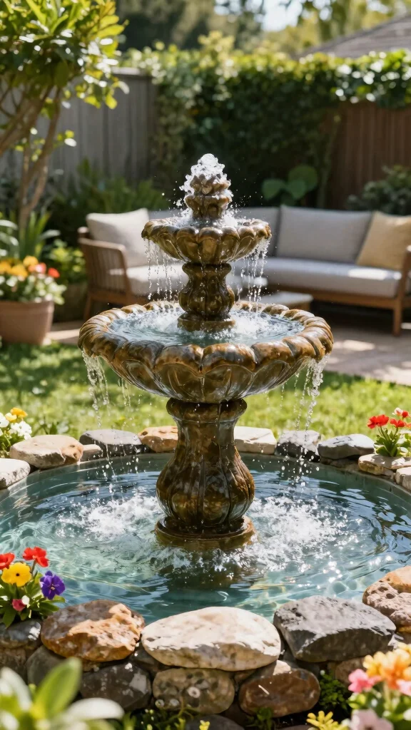 A DIY water fountain adds charm and tranquility to your outdoor space.