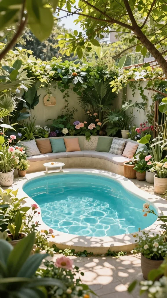 Transform a corner of your yard into a cozy garden pool nook. This stylish setup can provide a peaceful retreat for enjoying the water while surrounded by nature.