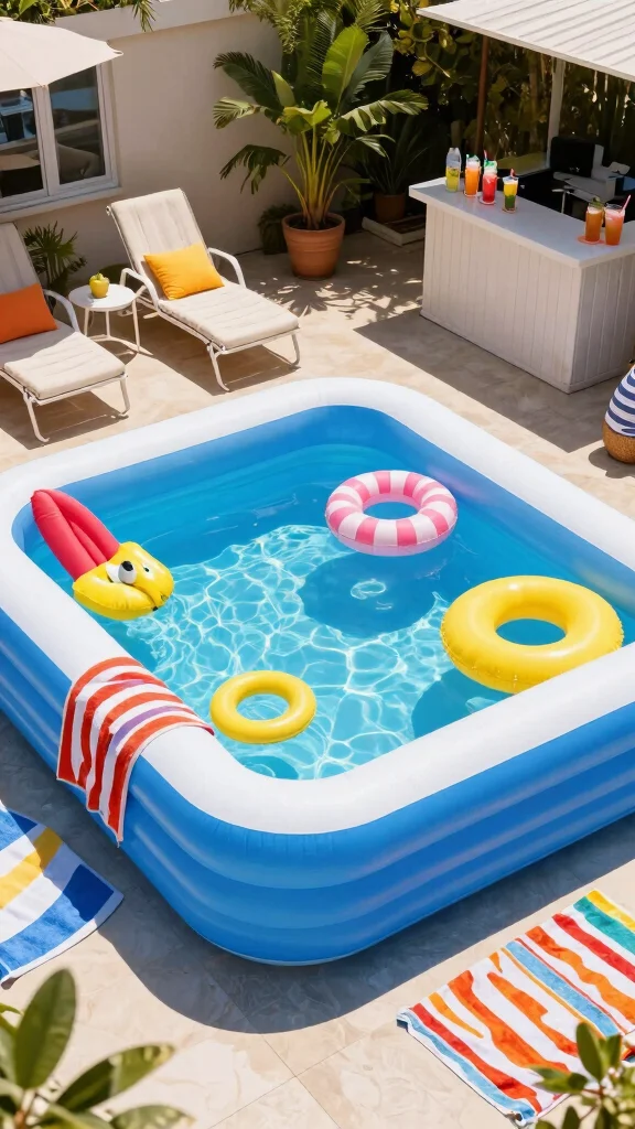 When choosing an inflatable pool, look for models that include fun features like slides or sun canopies. Surround it with colorful towels and floating toys for a lively atmosphere, and set up a nearby bar for refreshments.