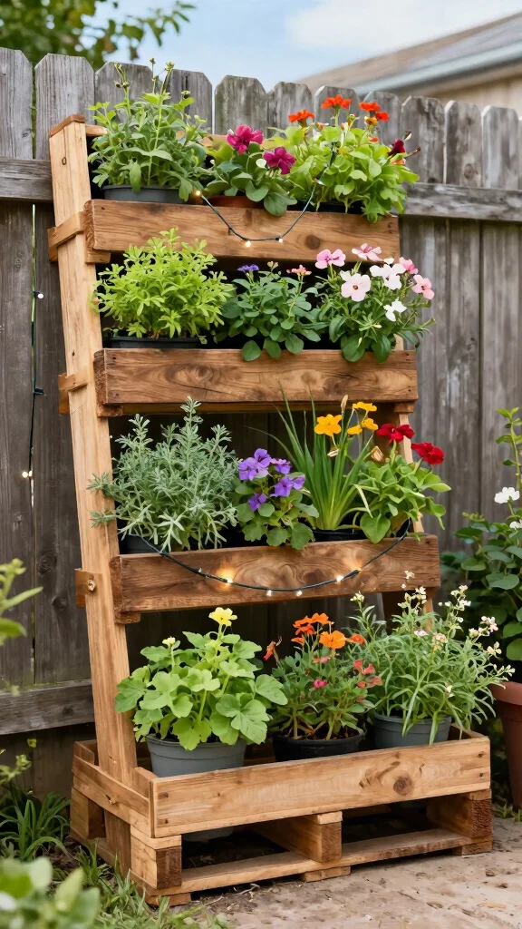 Use pallets to create a vertical garden, maximizing space while adding greenery to your backyard oasis.