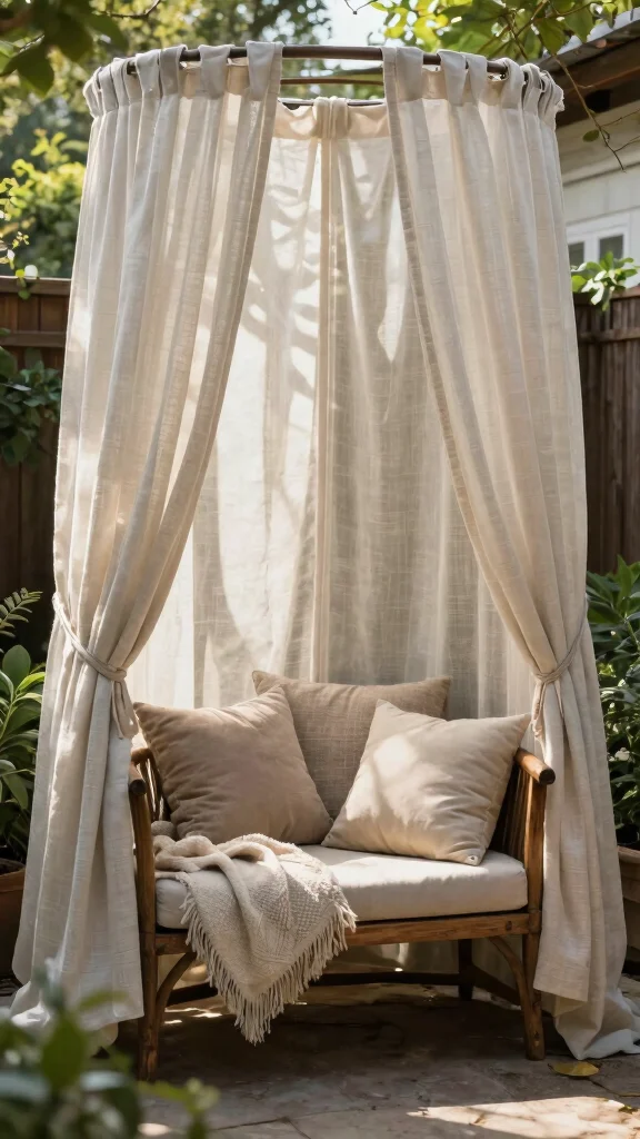 Transform an area of your backyard into a cozy nook by hanging outdoor curtains. This affordable decor element adds both privacy and comfort, allowing you to escape from the hustle and bustle of daily life. Opt for outdoor fabric that can withstand the elements while creating a soft, inviting atmosphere.To set up your nook, identify a corner with good natural light and hang curtains from a rod or wire strung between trees. Enhance the space with comfortable seating and plush pillows to create a perfect relaxation spot for reading or enjoying a cup of coffee.How to Set Up a Nook: