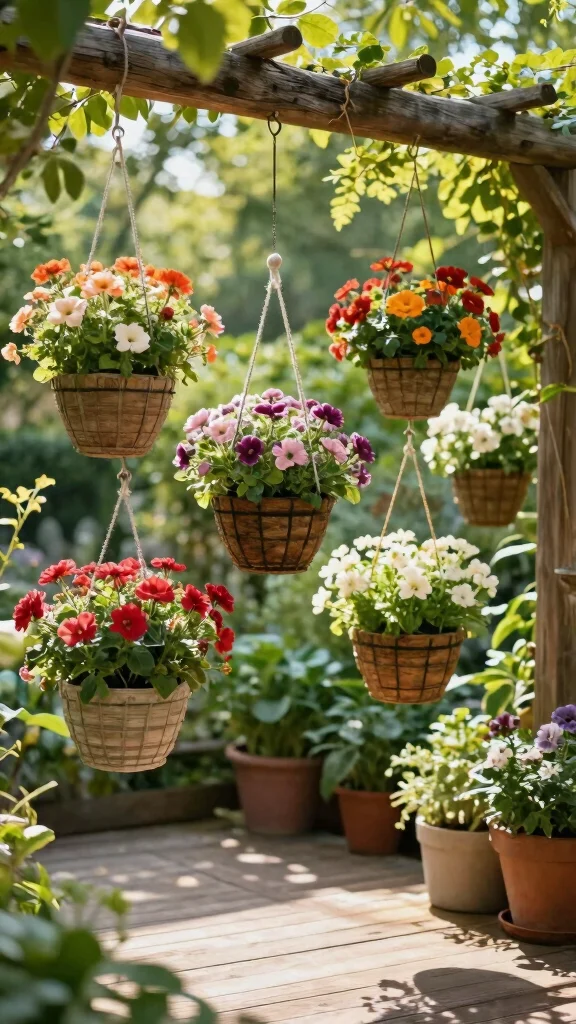 Elevate your garden with hanging planters that add visual interest while conserving floor space. These charming displays can be created by repurposing old buckets or buying inexpensive baskets to showcase beautiful flowers or even vegetables. Hanging them at various heights will create a more dynamic and appealing look.To successfully hang planters, choose sturdy hooks or brackets that can support their weight. Opt for plants that cascade downwards, like trailing petunias or ivy, for added drama. Consider grouping several planters together for a cohesive effect that draws the eye.How to Hang Planters: