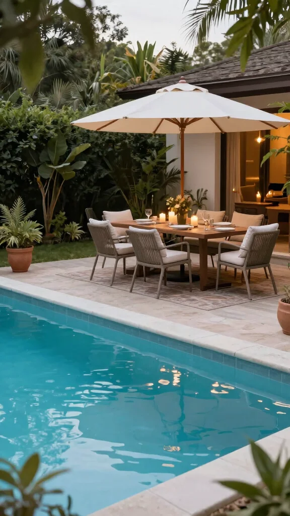 This setup fosters a serene and private retreat, perfect for enjoying your pool area.