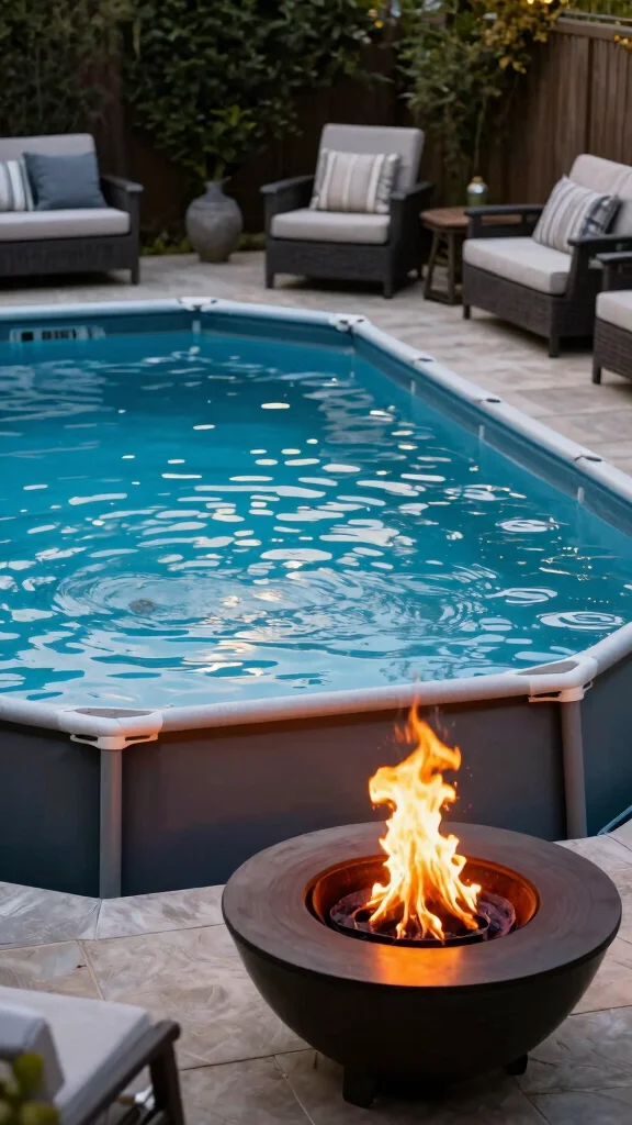 Create a dynamic atmosphere in your backyard oasis by combining water and fire elements. Position your above ground pool near a fire feature like a fire pit or bowl, allowing the contrast of fire and water to create a unique ambiance that is both relaxing and stimulating.