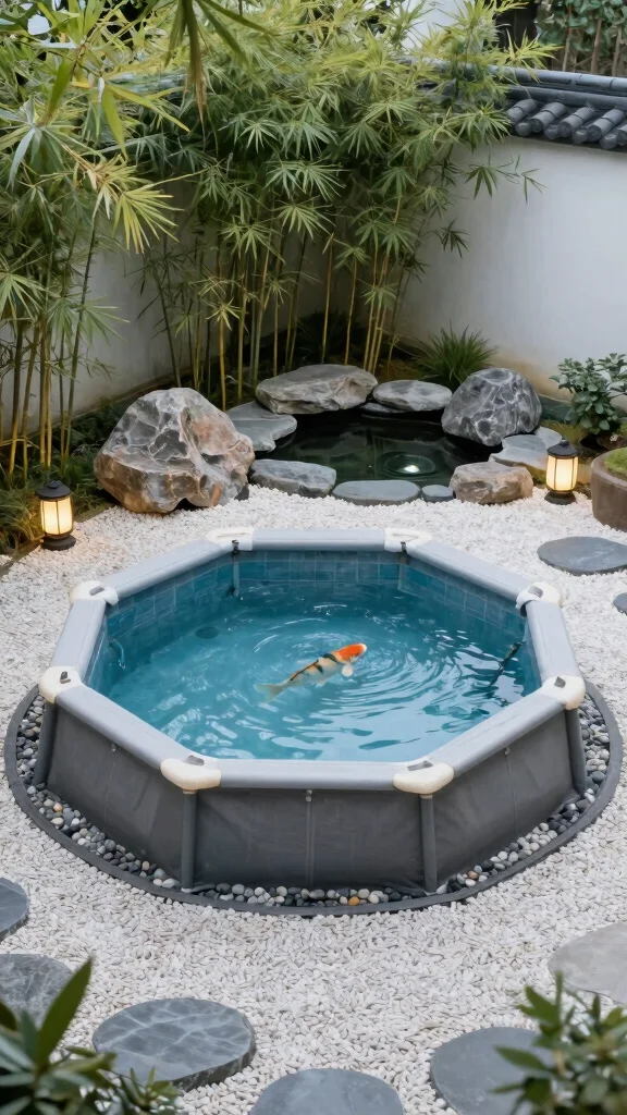 Transform your backyard into a calming zen garden, placing your above ground pool amid smooth stones and strategically placed bamboo. Adding a small koi pond can enhance tranquility, while surrounding the pool with pebbles instead of grass fosters a unique aesthetic. Select low-maintenance plants like succulents and ornamental grasses that complement the serene vibe of your space.