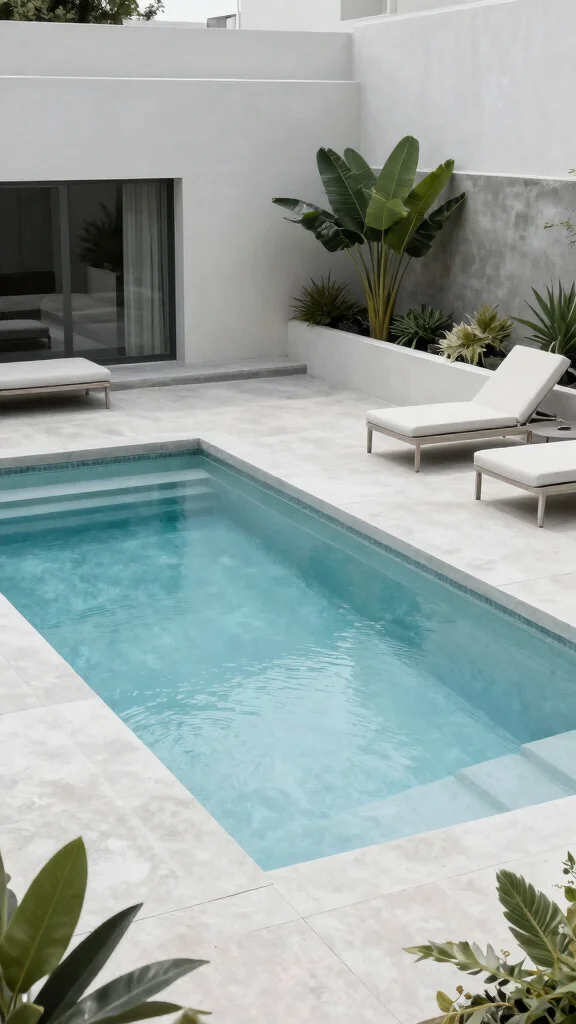 Keep decor minimal to amplify the spacious feel of your backyard. Built-in lighting along the pool edges can create a stunning glow at night, emphasizing the modern design.