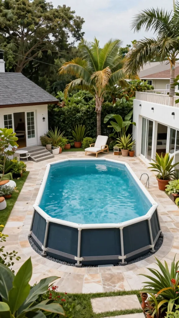 Turn your backyard into a lush tropical paradise with an above ground pool framed by palm trees and vibrant greenery. Adding bamboo fencing can create a sense of privacy while enhancing the exotic vibe. Incorporate colorful outdoor rugs that reflect beach hues to bring warmth and playfulness to your space. Include easy-care tropical plants like hibiscus and bird-of-paradise for vibrant splashes of color.