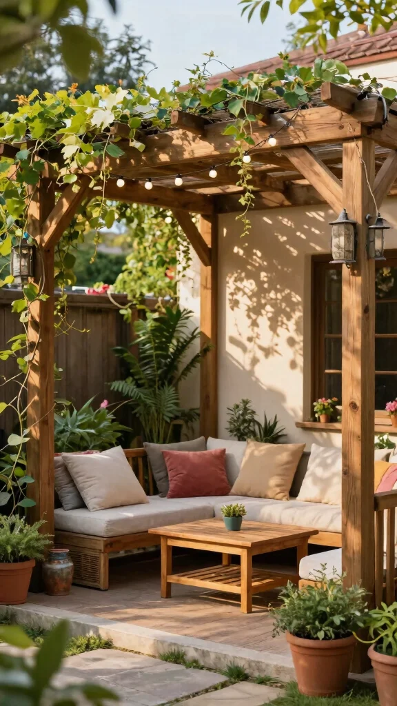 A stylish pergola can elevate your outdoor living area while providing much-needed shade. This elegant structure creates a comfortable space for dining or lounging, allowing you to enjoy your patio regardless of the sun’s intensity. Consider covering the top with climbing plants like wisteria or outdoor fabric for additional shade. Drape string lights across the beams to create a magical ambiance at night. Add cozy seating and a small coffee table beneath, and you’ll have a perfect retreat for intimate gatherings.