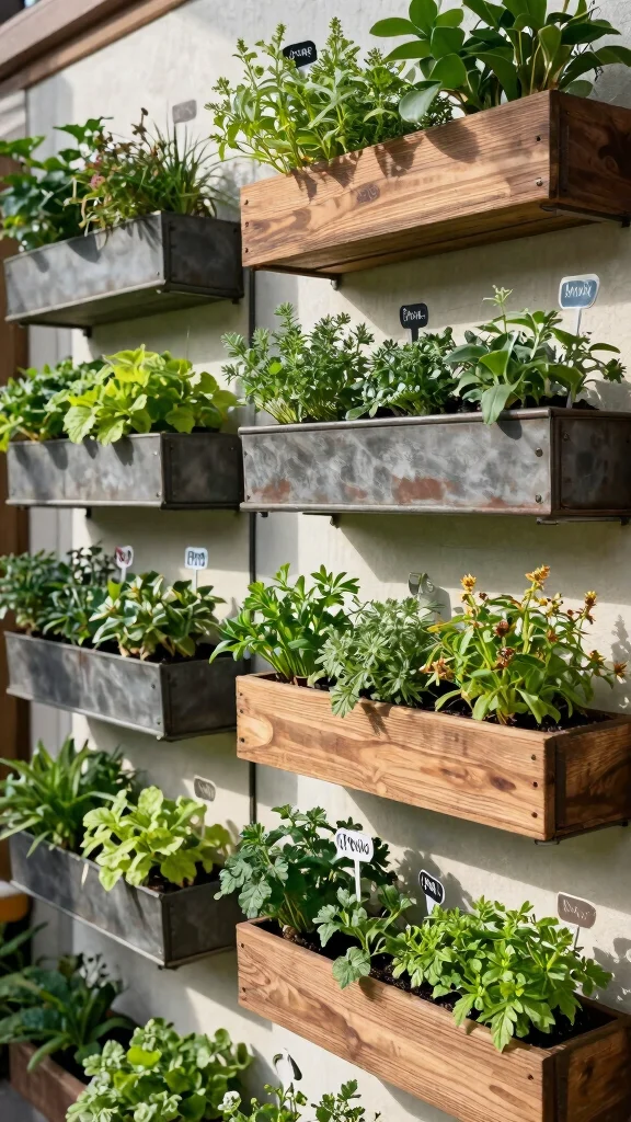 To bring this idea to life, think about using lightweight materials for your planters. You might choose herbs such as basil, mint, and thyme, which thrive in vertical settings. Adding trailing plants like a string of pearls can bring additional visual depth, ensuring your garden feels abundant and inviting.