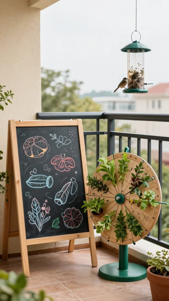 Creating interactive garden features can engage both you and your guests in the joy of gardening. Consider adding a small herb wheel, a chalkboard for notes, or even a spot for bird feeders, all of which can make your balcony lively and inviting.