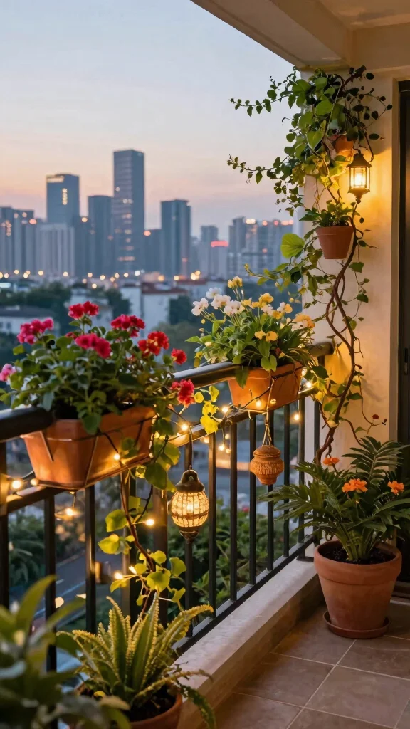 Fun fact: warm white string lights can transform a balcony in under 10 minutes and cut energy use by up to 60% compared to floodlights. For balcony garden decor ideas, drape them across railings and place lanterns on tabletops for cozy charm.