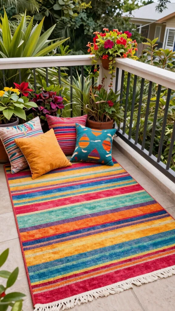 12. Use Colorful Outdoor Rugs for Comfort