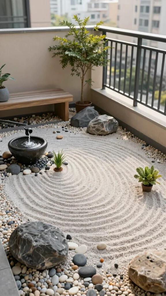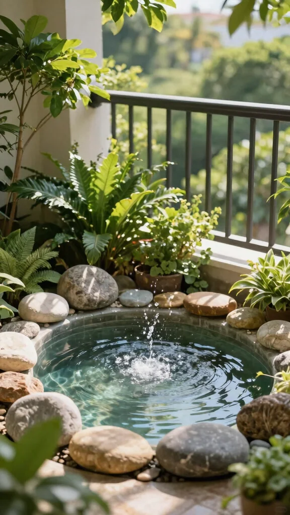 Introduce tranquility to your balcony with a small water feature. Water elements create a calming atmosphere and serve as a focal point in your garden.