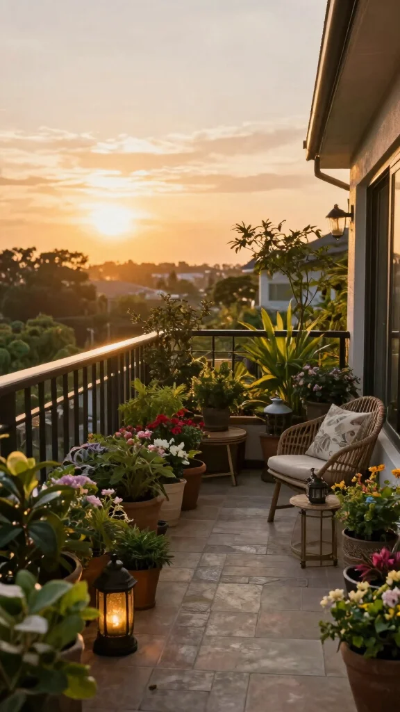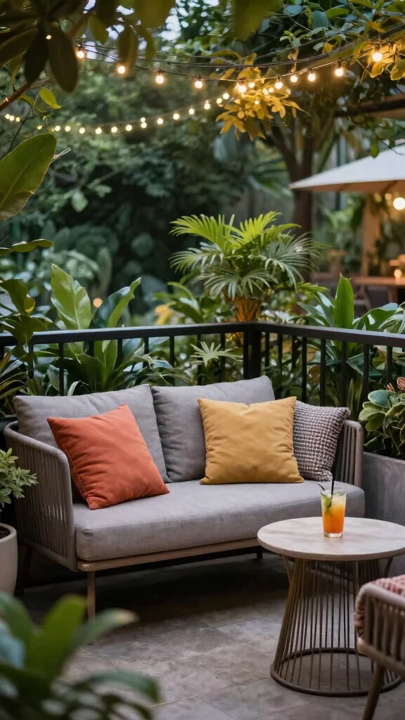 Use string lights or lanterns to enhance the ambiance of your balcony garden in the evening.