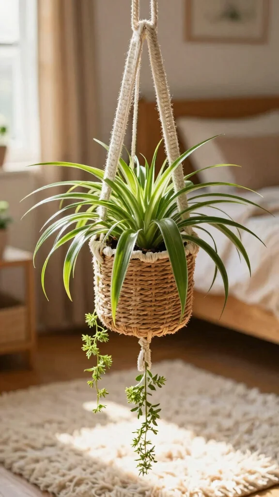 In many people, a calm, green bedroom can reduce stress and improve mood, which may help you wind down at night. The presence of bedroom greenery and simple indoor plant decor can make a space feel more cozy and inviting. While hanging plants aren’t a magic sleep cure, they can contribute to a soothing ambiance and cleaner air in small ways. For best results, choose low-dust, pet-friendly varieties, keep leaves clean, and maintain a regular sleep routine.