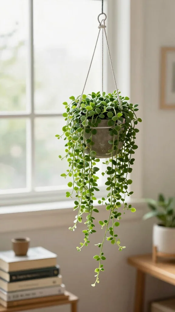 This plant thrives in low light and is perfect for hanging in cozy corners, known for its air-purifying abilities that enhance your environment.