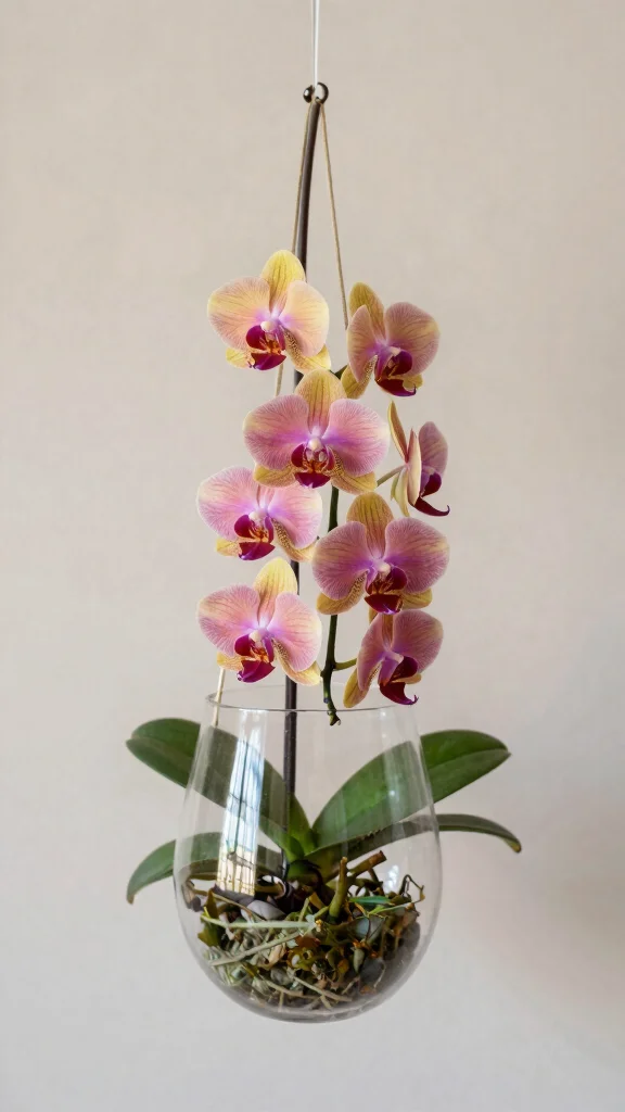 Orchids are celebrated for their exotic beauty and stunning flowers, making them a standout in any hanging arrangement. While they can be more challenging to care for compared to other plants, their elegance makes the effort worthwhile. Orchids thrive in bright, indirect light and require well-draining media to flourish.