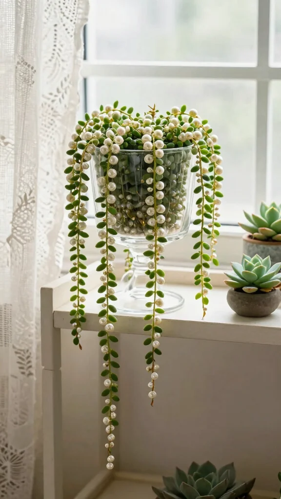 String of Pearls adds a touch of elegance and whimsy, making your space feel more inviting.